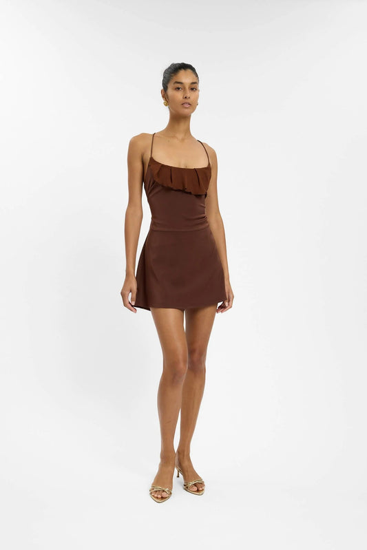 Frill Backless Mini Dress - Chocolate